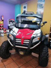 Can-Am Outlander 1000 MAX XT-P, 4x4, motor Rotax bicilíndric en V, direcció assistida, diferencial davanter de bloqueig automàtic, winch homologat, sistema de codificació digital de seguretat, neumàtics amb bloqueig de taló, portaequipatges multiusos amb sistema de col.locació ràpida, seient amb respatller de gran confortabilitat per l'acompanyant, 2 places.